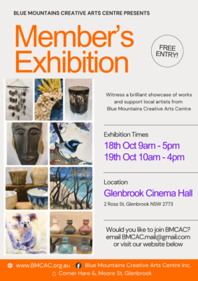 Get in early for your gift shopping – pottery, mosaics, paintings, jewellery and more. The works for sale are all created by the talented members of the Art Centre.